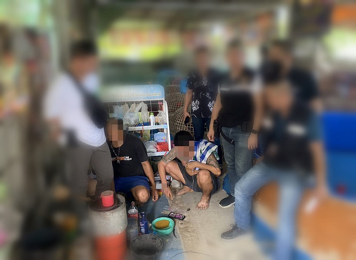 เป้าหมายที่ 2.บริเวณบ้านเช่าไม่มีเลขที่ หมู่ 4 ต.บ้านช้าง อ.พนัสนิคม จ.ชลบุรี สามารถจับกุมผู้ต้องหา จำนวน 3 ราย ดังนี้