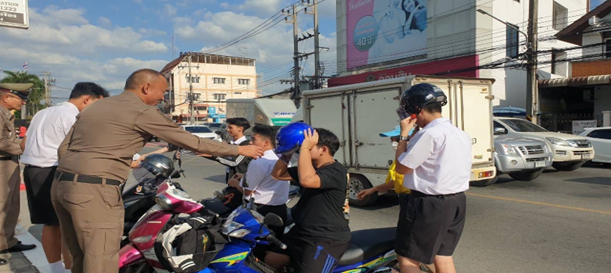 แจกหมวกนิรภัยและน้ำดื่ม ให้กับผู้ใช้รถใช้ถนน ช่วงเทศกาลปีใหม่ 2567