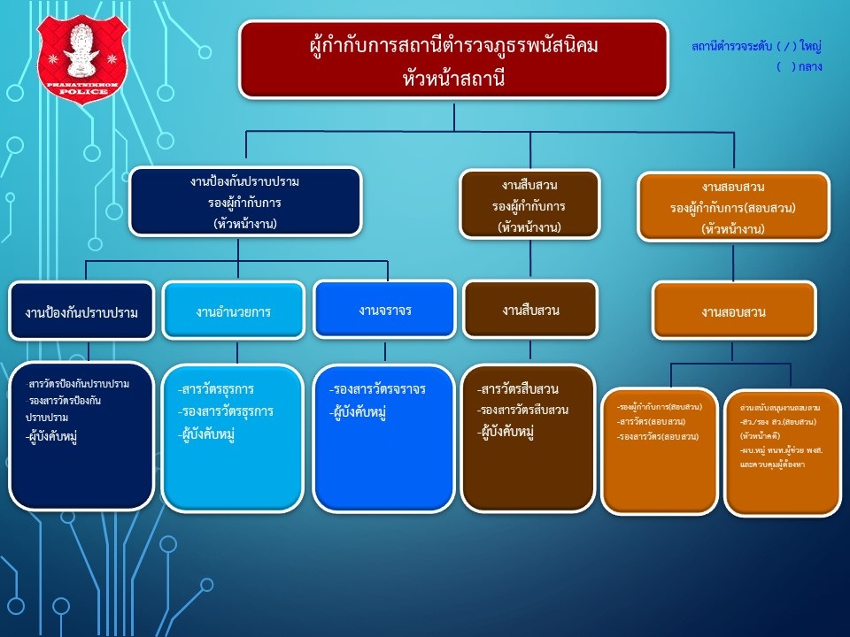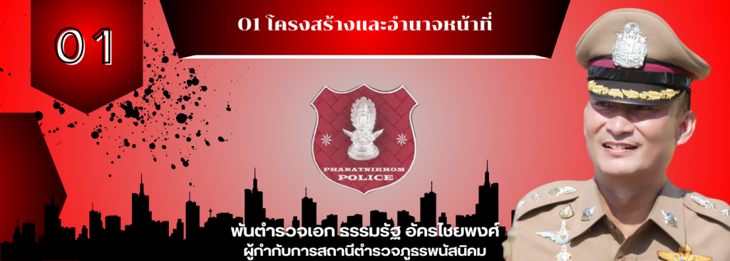 O1 โครงสร้างและอำนาจหน้าที่ โครงสร้างองค์กร ของสถานีตำรวจภูธรพนัสนิคม การแบ่งสายงาน ของสถานีตำรวจภูธรพนัสนิคม อำนาจหน้าที่ ของสถานีตำรวจภูธรพนัสนิคม
