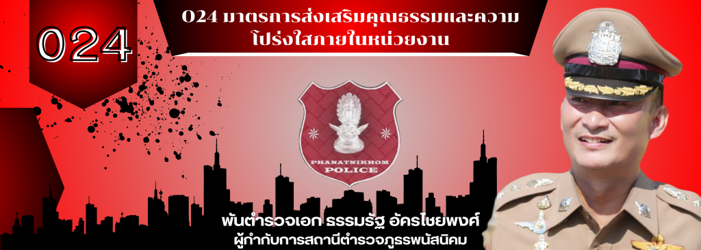 O24 มาตรการส่งเสริมคุณธรรมและความโปร่งใสภายในหน่วยงาน มาตรการยกระดับคุณธรรมและความโปร่งใสภายใน ของสถานีตํารวจภูธรพนัสนิคม สามารถ Download เอกสารได้ที่นี่ >>>