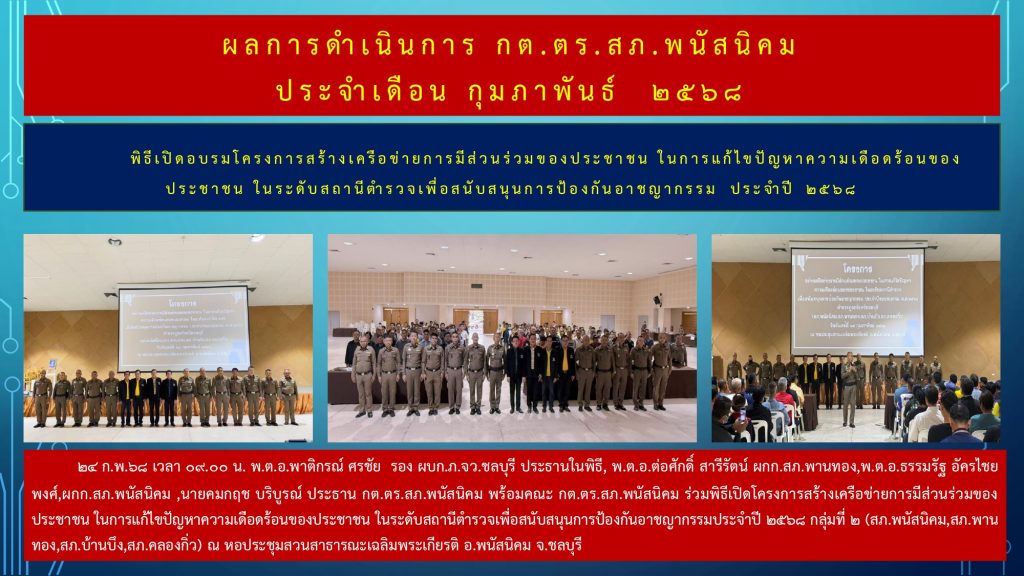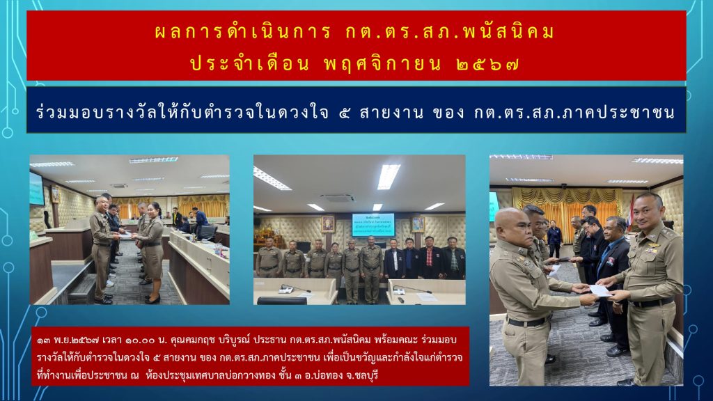 O4 ข้อมูลคณะกรรมการตรวจสอบและติดตามการบริหารงานตำรวจ (กต.ตร.) ของสถานีตำรวจ บทบาท อำนาจหน้าที่ คณะกรรมการตรวจสอบและติดตามการบริหารงานตำรวจ (กต.ตร.) ของสถานีตำรวจภูธรพนัสนิคม รายชื่อคณะกรรมการตรวจสอบและติดตามการบริหารงานตำรวจ (กต.ตร.) ของสถานีตำรวจภูธรพนัสนิคม ผลการดำเนินงาน คณะกรรมการตรวจสอบและติดตามการบริหารงานตำรวจ (กต.ตร.) ของสถานีตำรวจภูธรพนัสนิคม เดือน ตุลาคม 2567 เดือน พฤศจิกายน 2567 เดือน ธันวาคม 2567 เดือน มกราคม 2568 เดือน กุมภาพันธ์ 2568 เดือน มีนาคม 2568