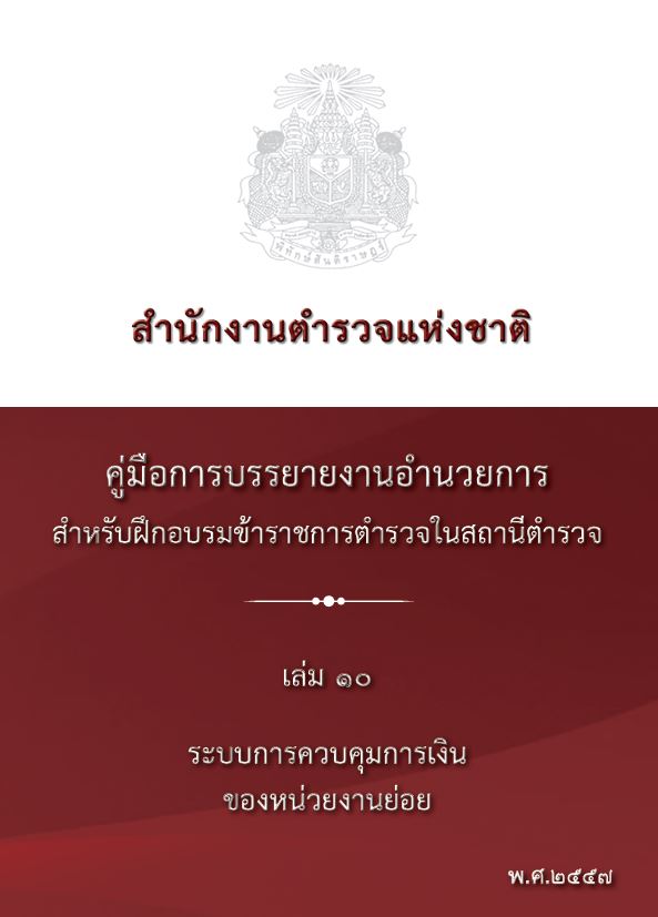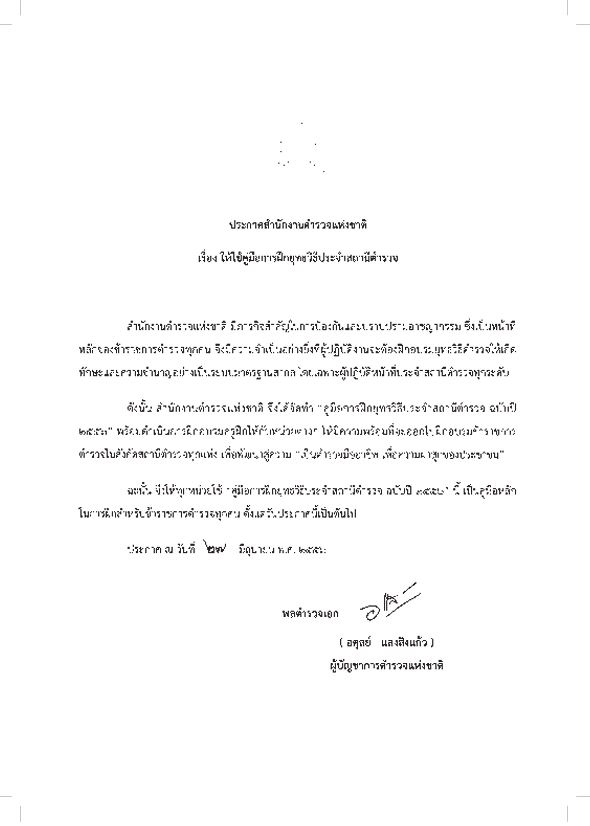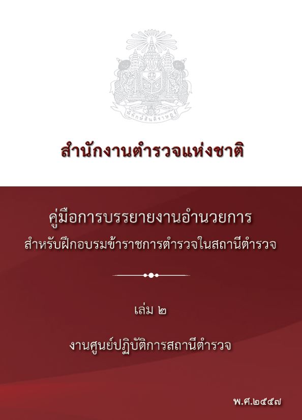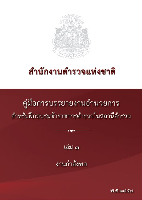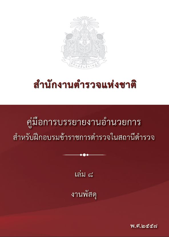 O8 คู่มือการปฏิบัติงานสำหรับเจ้าหน้าที่ คู่มืองานอำนวยการ • งานธุรการและพัฒนากำลังพล • งานศูนย์ปฏิบัติการสถานี • งานกำลังพล • งานวินัย • งานสวัสดิการและสิทธิประโยชน์อื่น • งานยุทธศาสตร์ • งานงบประมาณ • งานพัสดุ • งานการเงิน • ระบบการควบคุมการเงินของหน่วยงานย่อย • การจัดวางระบบการควบคุมภายในและการติดตามประเมินผล คู่มืองานป้องกันปราบปราม • การบริหารงานป้องกันและปราบรามอาชญากรรม • การป้องกันอาชญากรรมเชิงรุก คู่มืองานจราจร • คู่มือปฏิบัติหน้าที่งานจราจรในสถานีตำรวจ คู่มืองานสอบสวน • คู่มือการสอบสวน คดีความผิดเกี่ยวกับทรัพยากรธรรมชาติและสิ่งแวดล้อม • คู่มือการสอบสวน คดีความผิดเกี่ยวกับการคุ้มครองผู้บริโภค • คู่มือการสอบสวน คดีความผิดเกี่ยวกับยาเสพติด • คู่มือปฏิบัติงานสอบสวน คู่มืออื่น ๆ • นโยบายและแนวทางการปฏิบัติในการถวายความสะดวกด้านการจราจรในการเสด็จพระราชดำเนิน • คู่มือแบบฝึกกระบี่และการปฏิบัติของผู้อัญเชิญธงชัยเฉลิมพล • คู่มือแบบฝึกบุคคลท่ามือเปล่า • คู่มือยุทธวิธีตำรวจ • คู่มือการควบคุมและการจัดสายตรวจ • คู่มือการฝึกยุทธวิธีประจำสถานี • คู่มือประชาชน มาตรฐานการปฏิบัติงาน (Standard Operating Procedure : SOP)
